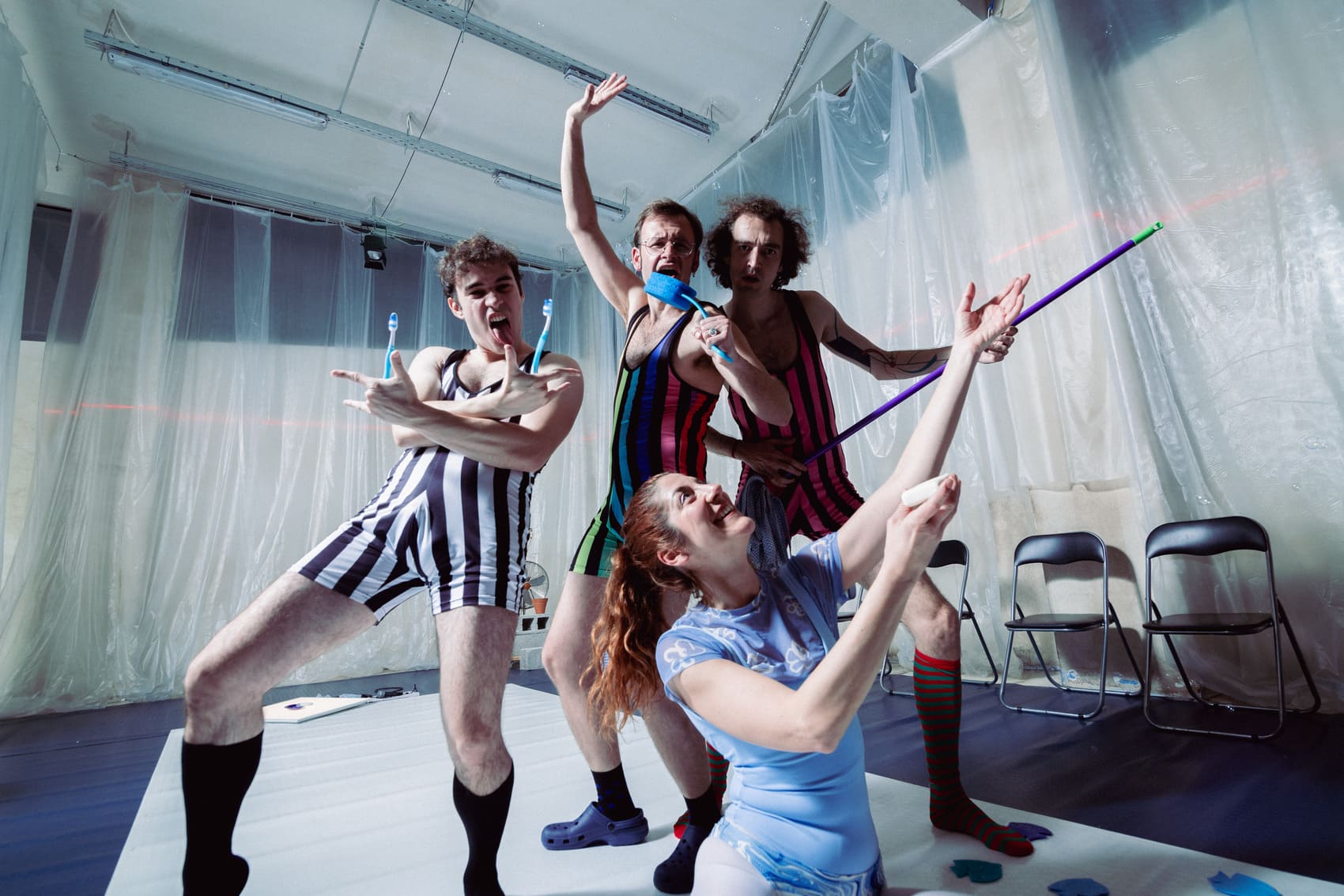 Τα πρόσωπα της παράστασης, εγκλωβισμένα σε ένα θέμα γελοίο, αιωρούνται μεταξύ κυριολεξίας και μεταφοράς, ποίησης και καθημερινότητας, βαρύτητας και ελαφρότητας, και εν τέλει μεταξύ μιας πέτρας και ενός σαπουνιού. Οι συνειρμοί τους μας οδηγούν σε γεγονότα φανταστικά ή πραγματικά, καταργώντας τη γραμμικότητα μιας ιστορίας και παρασύροντάς μας σε μια δίνη, ενώ, καθ’ όλη τη διάρκεια υποβόσκει το ερώτημα «γιατί να μην είναι ελαφρύς αυτός ο κόσμος;». Μια ωδή στην ελαφρότητα αλλά και την καθαρή σκέψη, με τέσσερις νέους καλλιτέχνες να διεξάγουν επί σκηνής ένα κωμικό και συγχρόνως άκρως σοβαρό επικοινωνιακό πείραμα.