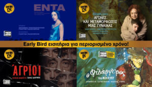 Τα εισιτήρια για όλες τις παραστάσεις θα διατίθενται μέχρι τέλος Σεπτεμβρίου στην προνομιακή τιμή Early Birds € 12.00 και για την παιδική παράσταση € 8.00